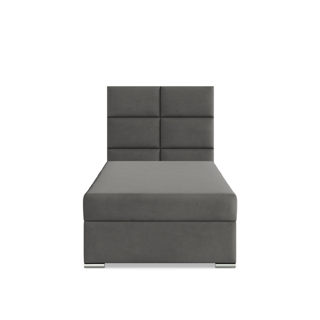 Calvi egyszemélyes ágy, bársony, ágyneműtartóval, sötétszürke