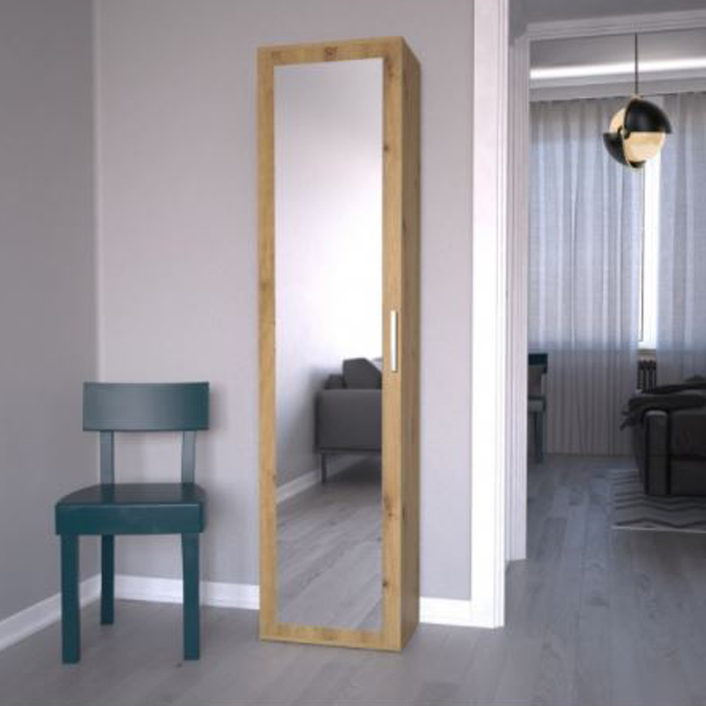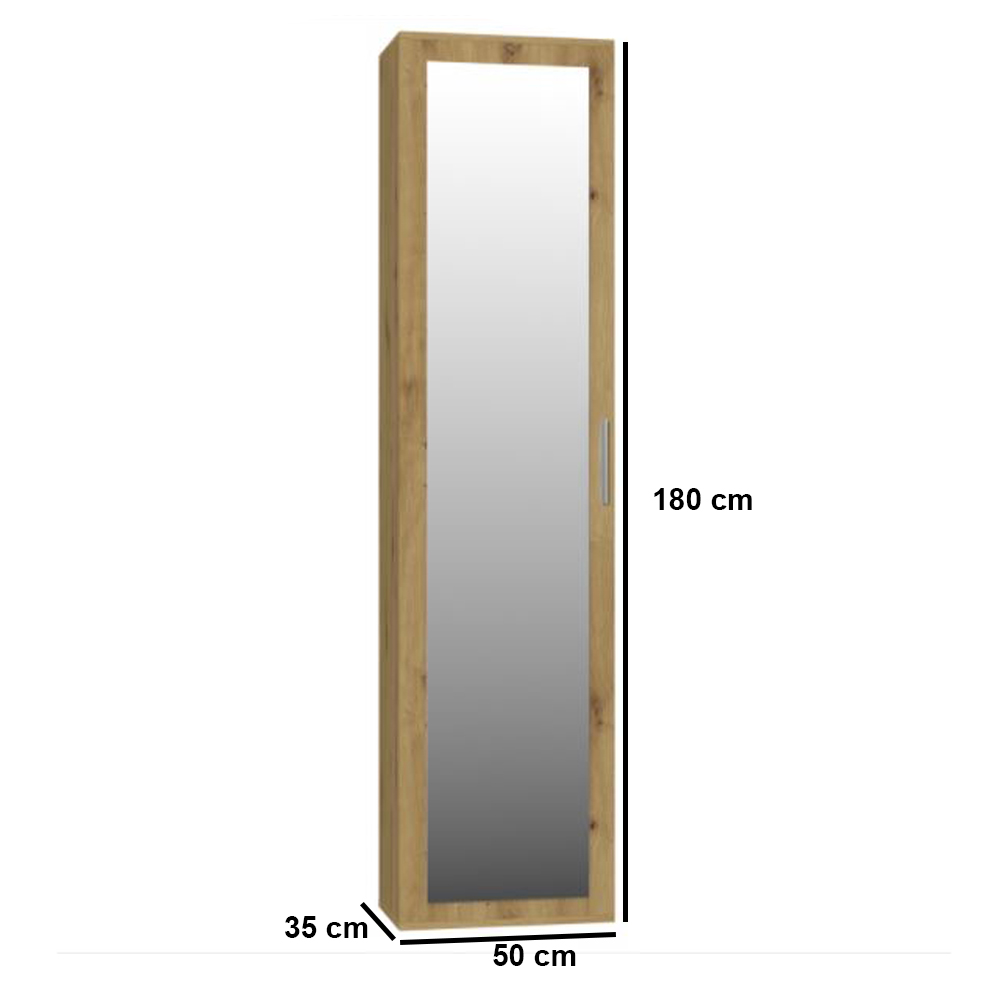 Az szekrény magassága összesen 180 cm, szélessége 50 cm, mélysége 35 cm. Dizájnjában és méreteiben is tökéletesen passzolhat az előszobádba.