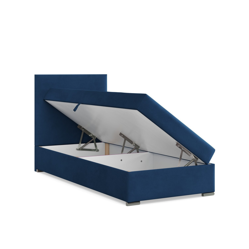 Elda egyszemélyes ágy, bársony, ágyneműtartóval, kék