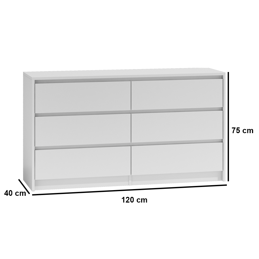 (Értékcsökkentett) Drohmo K120 2X3 komód, fehér (front, 120x75x40 cm, mindkét oldal sérült)